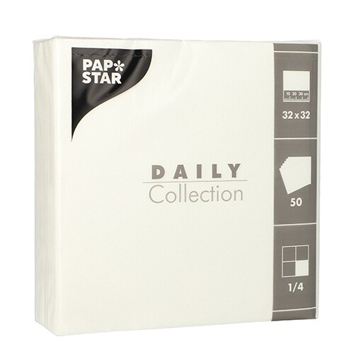 PAPSTAR 50 Servietten "DAILY Collection" 1/4-Falz 32 cm x 32 cm weiss (89624, 50 Stück)