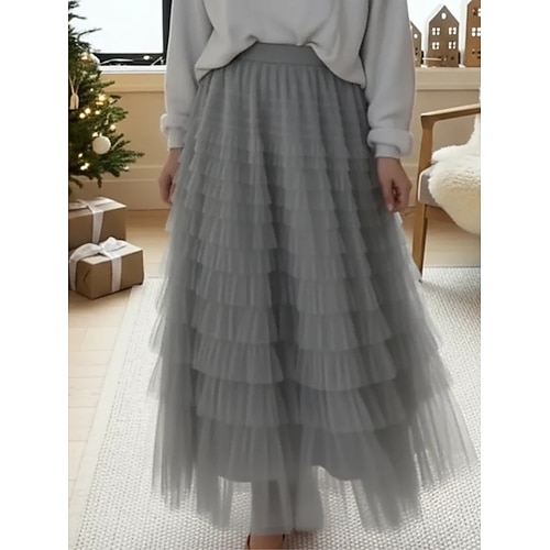 Per donna Linea A Elegante Maxi Misura del girovita medio Gonne Stratificato Inelastico Vinaccia Nero Rosa Marrone Primavera Tulle