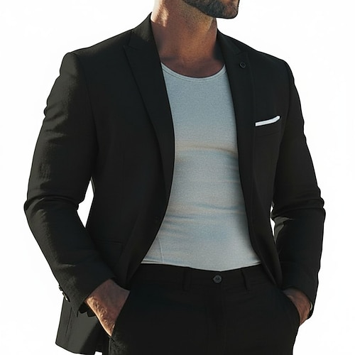 Per uomo Giacca blazer Collare di chiusura Festa Tinta unita Blazer Nero Argento Champagne Vestibilità su misura Monopetto Un Bottone