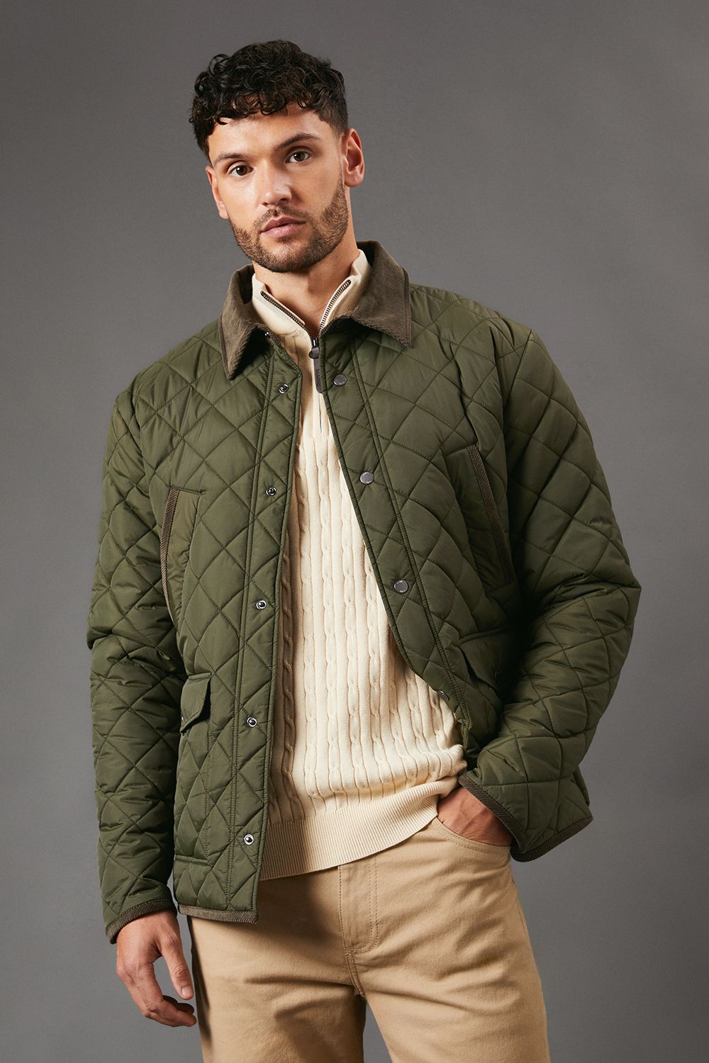 Maine Mens Cord Collar Diamond Quilted Jacket - Khaki - Size X-large | Maine Sale | Discount Designer Brands