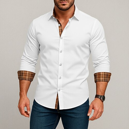 Per uomo Camicia Camicia elegante Camicia con Bottoni Blocco di colori Quotidiano Affari Nero Bianco Rosso Blu scuro Manica Lunga Collo ripiegato Tutte le stagioni Abbigliamento Patchwork