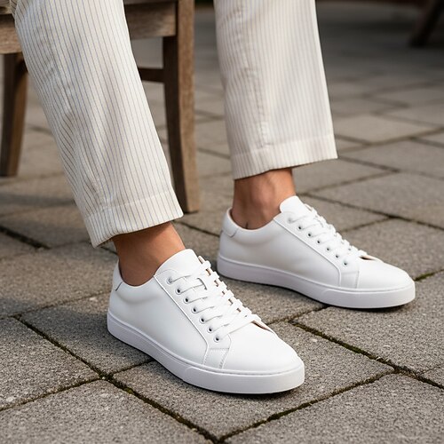 scarpe da ginnastica classiche in pelle bianca da uomo, scarpe casual con lacci per l'uso quotidiano