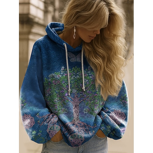 Per donna Felpa con cappuccio Floreale Grafico Elegante Caldo Attivo Manica Lunga Con Cappuccio Top Regolari Streetwear Abbigliamento Quotidiano Casuale Patchwork Stampato Blu Rosso Viola Fucsia Verde