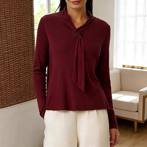 Per donna Tunica Maglietta Tinta unica Elegante Essenziale Classico Manica Lunga Scollo a V Top Regolari Quotidiano Blu Rosa Vino Marrone Verde Primavera Autunno Inverno