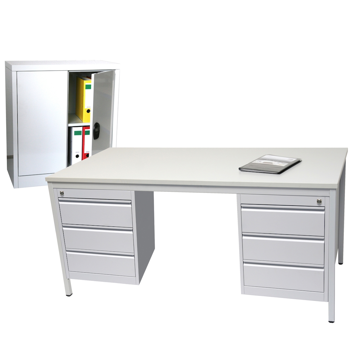 Szagato Schreibtisch Profi Office-Line SET 160x80cm, inkl. 2 x Unterbauschrank Professional 3 Schubladen inkl. Stahlschrank 90x80cm, lichtgrau