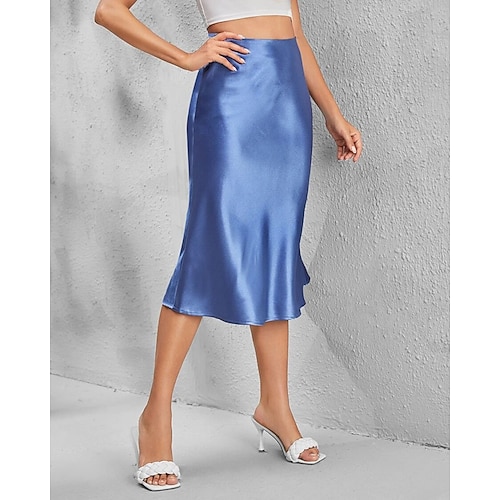 Per donna Linea A Elegante Moda Casual Midi Vita Alta Gonne Semplice Patchwork Micro-elastico Quotidiano Streetwear Nero Rosa Rosa polverosa Verde scuro Estate Spandex Poliestere