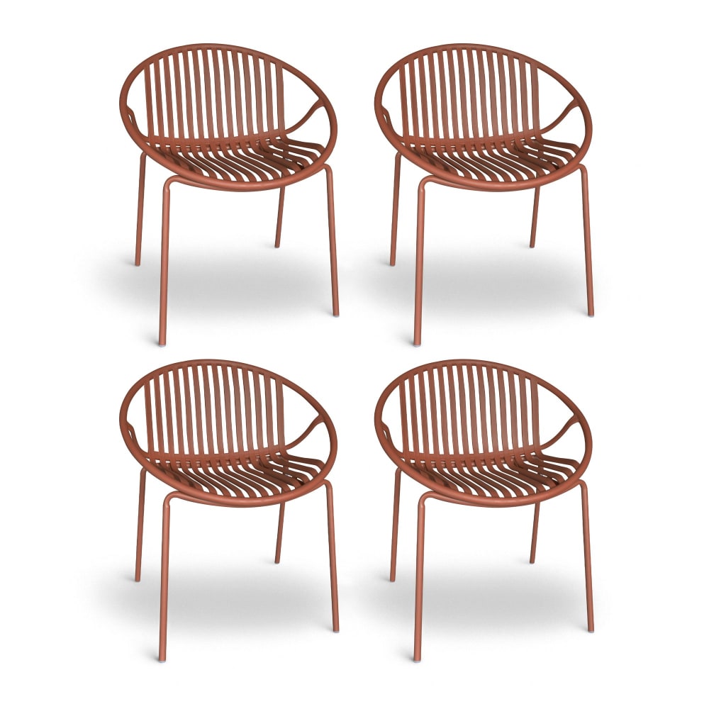 Lot de 4 fauteuils de table brique en polypropylène et métal