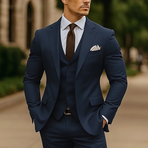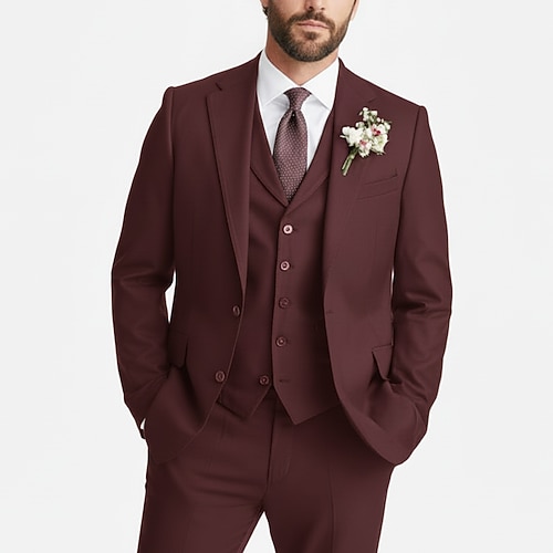 Uomo Casuale Semi-Formale Abiti da lavoro Bavero classico Nero Borgogna Quotidiano Affari Tinta unita Vestibilità su misura 3 pezzi Monopetto Due Bottoni