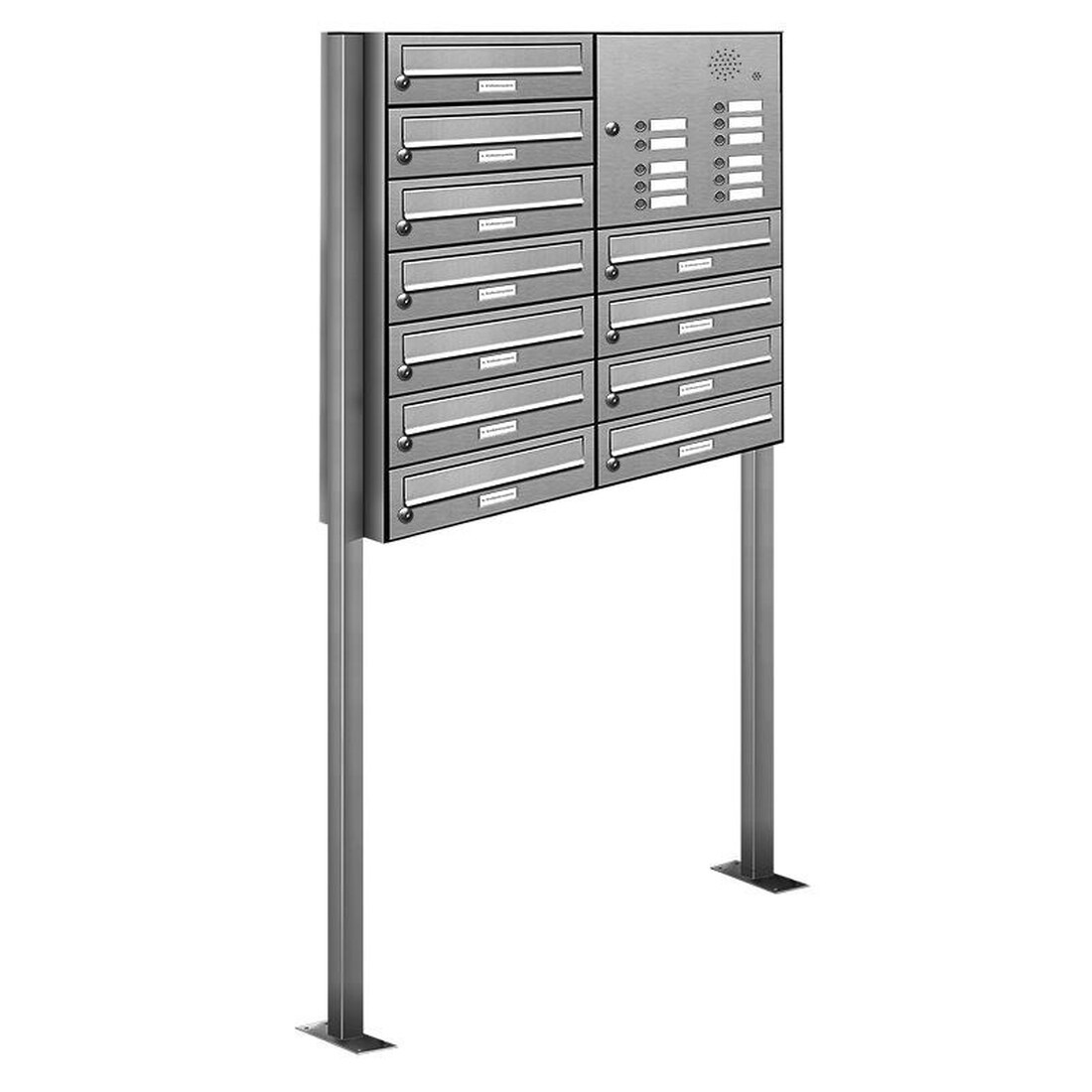 AL Briefkastensysteme 11 Fach Premium Edelstahl Stand Briefkasten Anlage mit Klingeln, Post A4, modern, robust, wetterfest, Artikelnummer: 132T11S2KSR