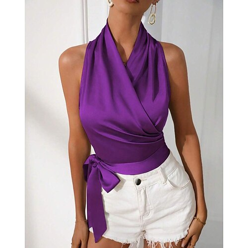Per donna Blusa Semplice Elegante Sexy Senza Maniche All'americana Top Regolari Ferie Uscire Senza schiena Blu Nero Champagne Verde chiaro Viola Estate Primavera