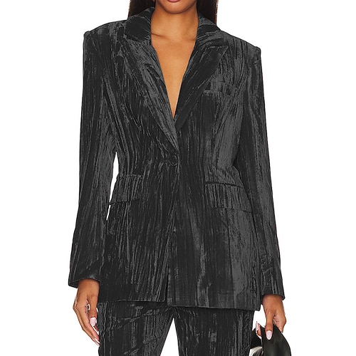 Per donna Blazer Blazer di velluto Caldo Confortevole Arricciato Tasca Bottoni Elegante Retrò Tinta unica Formale Vacanza Streetwear Casuale Regolare Bavero classico Vestibilità regolare Manica Lunga