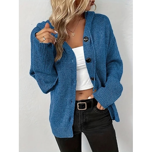 Per donna Felpa Cardigan Elegante Moda Streetwear Colore Puro Con Cappuccio Tasca Lavorato a maglia Manica Lunga Top Regolari Maglia All'aperto Quotidiano Weekend Nero Bianco Autunno Inverno