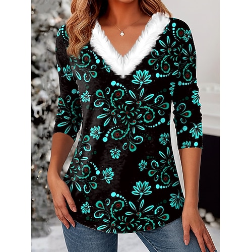 Per donna Maglietta Floreale Grafico Piante Vintage Elegante Classico Manica Lunga Scollo a V Top Regolari Quotidiano Weekend Stampato Blu Nero Rosso Verde Estate Primavera Autunno Inverno