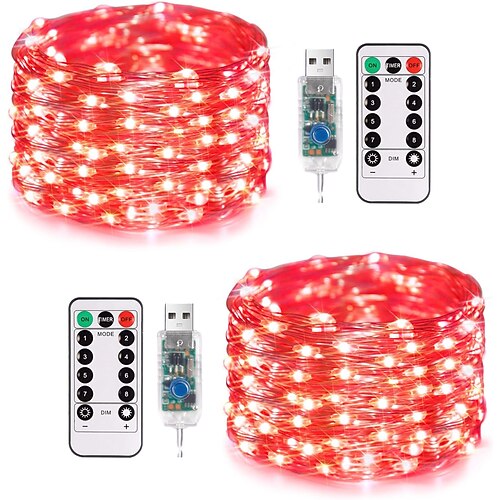 Luci a Stringa Fatate LED Luci a Filo di Rame Dimmerabili con Telecomando 50M-500Leds 30M-300Leds 20m-200Leds 10m-100leds per Festa Matrimonio Decorazioni per Albero e Camera da Letto