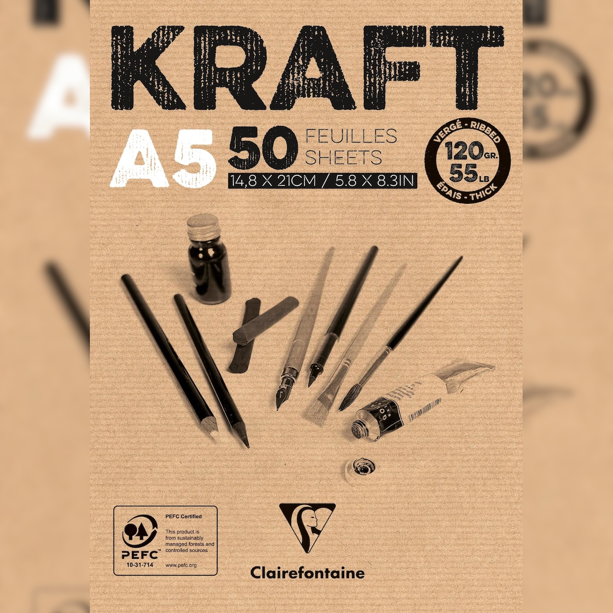 Clairefontaine 5x Block Kraftpapier, geleimt, 100 Blatt A5 120g - 975814C