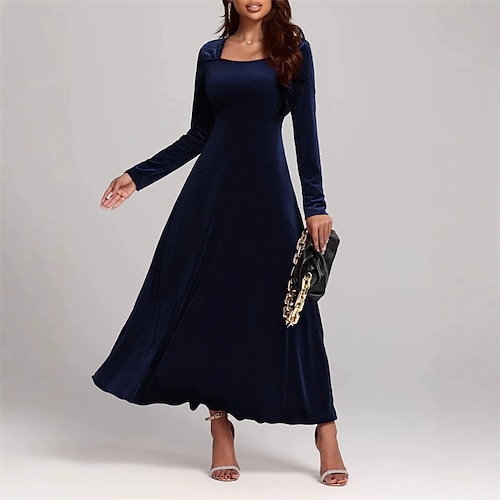 Per donna Abito Midi Abito di Natale Abito in Velluto Abito da Cocktail Elegante Vintage Moda Quotidiano All'aperto Festa serale Vestibilità regolare Semplice Manica Lunga Collo quadrato Blu Rosso