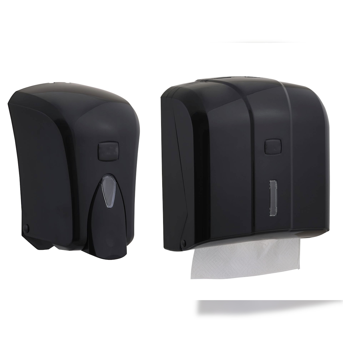 CleanSV® Via Set Schwarz Seifenspender 1000 ml. und Papierhandtuchspender