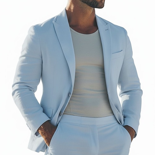 Uomo Casuale Matrimonio in Spiaggia Completi in Lino Bavero a lancia verde pisello Nero Moda Leggero Tinta unita Vestibilità su misura 2 pezzi Monopetto Due Bottoni