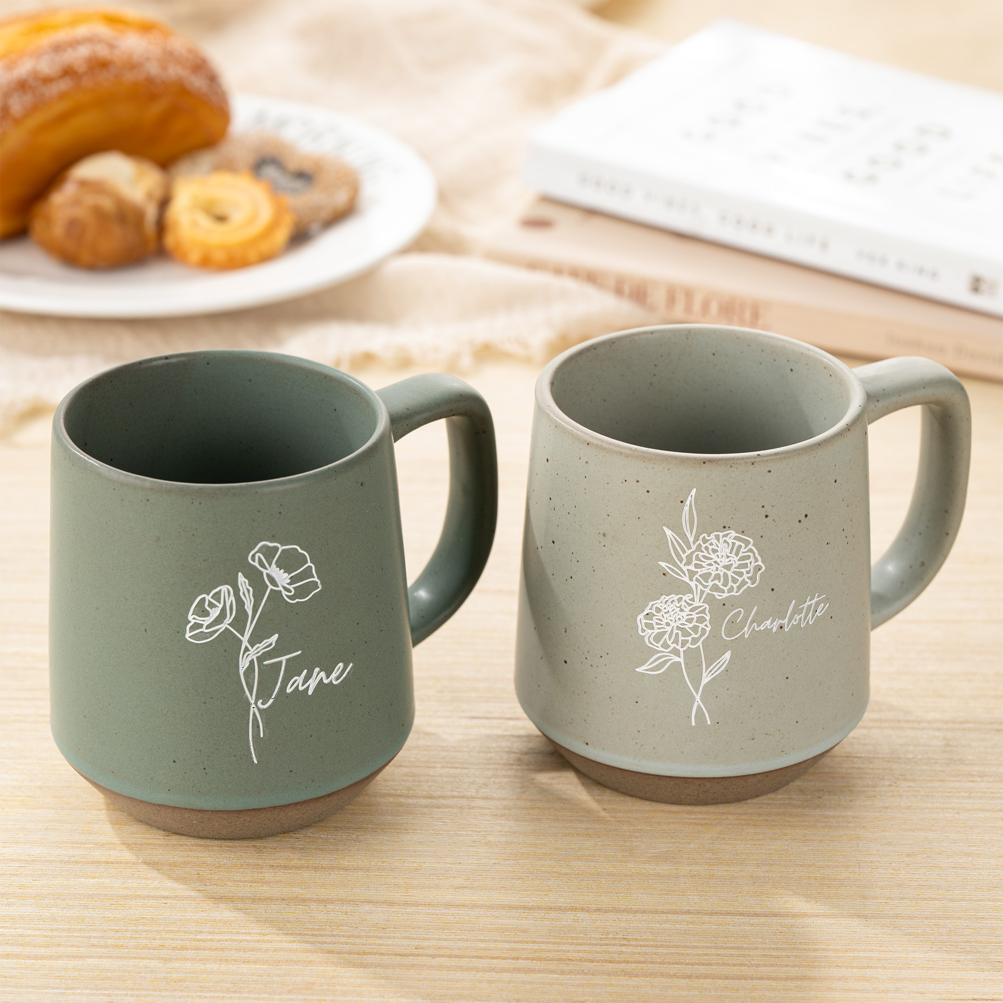 Personalisierter Retro Becher mit Geburtsblume und Namen Handgefertigte Steingut Tasse 350ml Hausdeko Geburtstag Geschenk