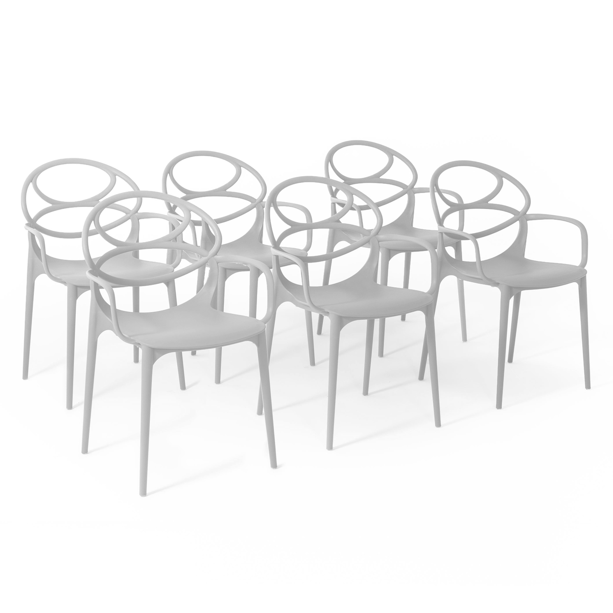 RATTATAN Set aus 6 stapelbaren Stühlen aus Polypropylen mit Glasfaser für Außen-, Garten-, Bar-, Restaurant- oder Küchenbereich – Charlotte – Hellgrau