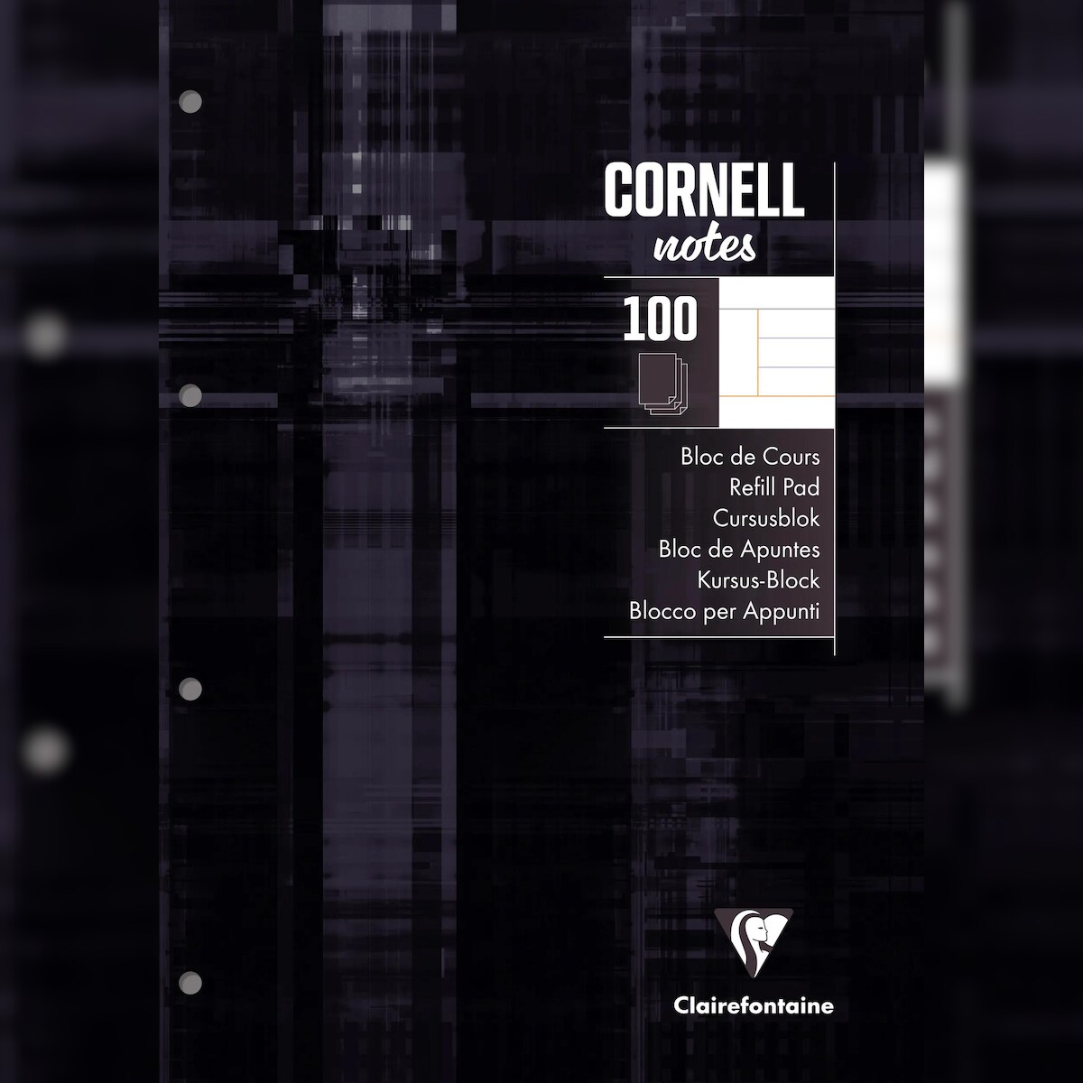 Clairefontaine 58198C 5x Block CORNELL, A4, 100 Blatt liniert 90g, 4-fach gelocht Schwarz