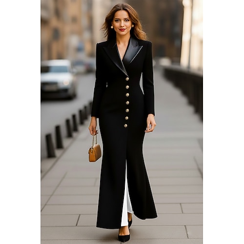 Per donna Da donna Abito da smoking Linea ad A Formale Raso Strass Elegante Vintage Manica Lunga Lunghezza al pavimento Dentellato Risvolto a punta Doppiopetto