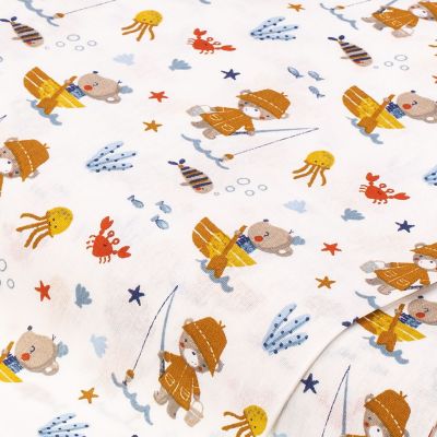Tissu coton "ours au bord de mer", blanc/coloré