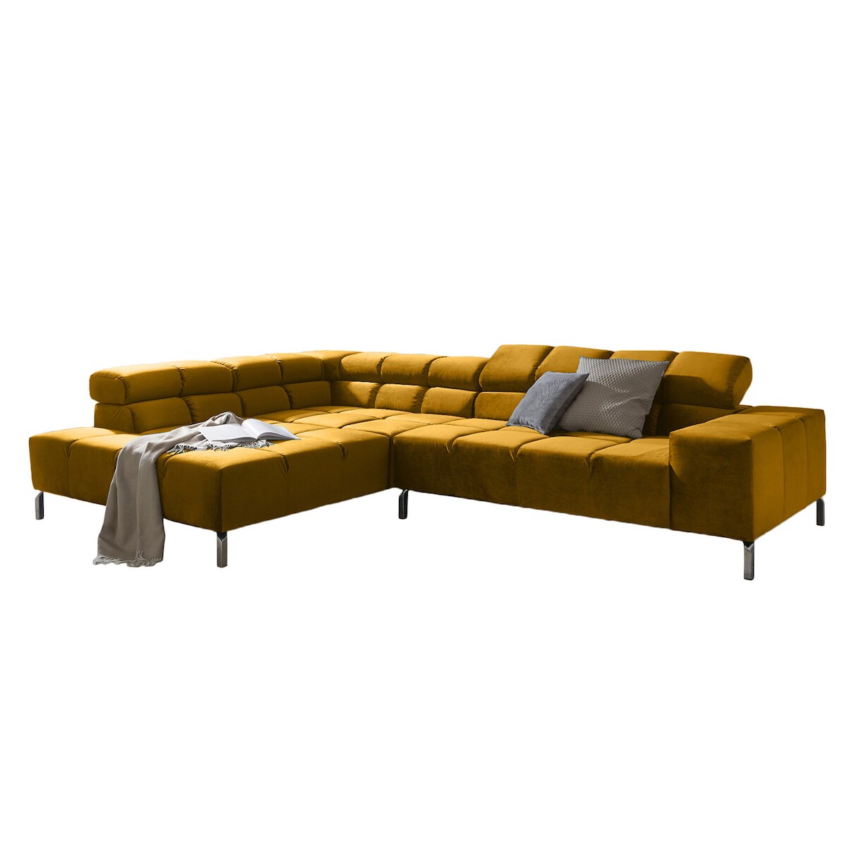 KAWOLA Sofa NELSON Ecksofa Velvet curry Recamiere links mit motorischem Sitzvorzug