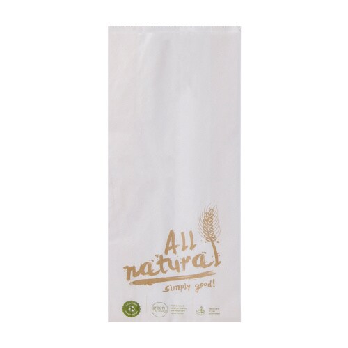 1000 Bäckerfaltenbeutel 428 18+6x39 cm Kraftpapier weiß Motiv „All Natural“