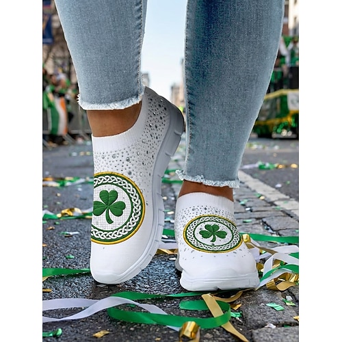 Per donna Casuale Quotidiano Passeggiata Strass Tacco basso Punta Tonda Sportivo Casual Comfort Tessitura Volante Mocassino Bianco / nero Bianco e verde Verde