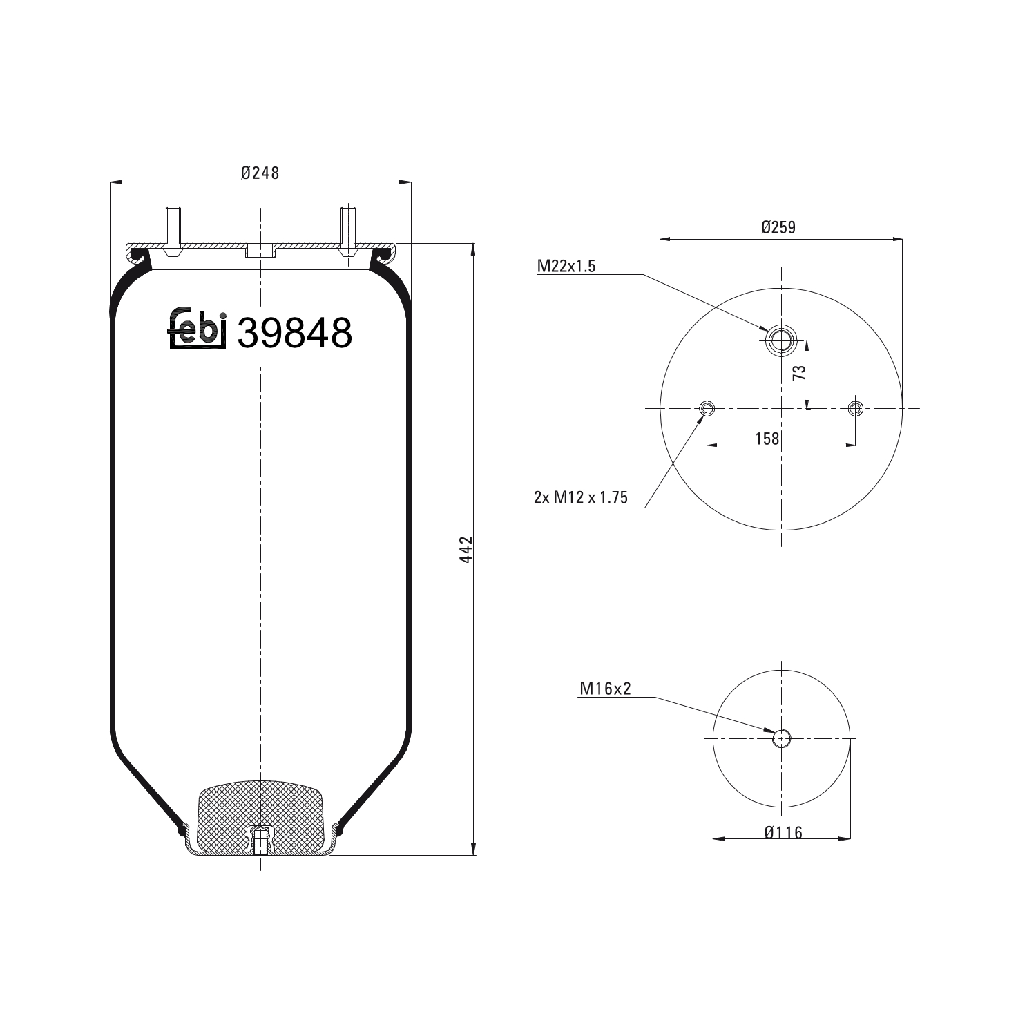 FEBI BILSTEIN Federbalg, Luftfederung 39848 Universal ohne Kolben 116mm