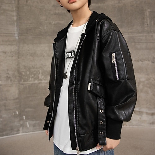 Bambini Ragazzi Giacca in pelle nera Giacca di pelle Capispalla Semplice Manica Lunga Con zip Impermeabile Antivento Cappotto Quotidiano Moda Casual Nero Marrone Primavera Autunno 4-12 Anni