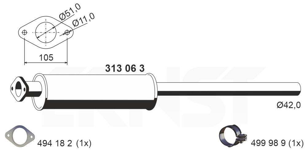 ERNST Vorschalldämpfer für FORD 1677736 ME3M5J-5D259-A1A 1306077 313063
