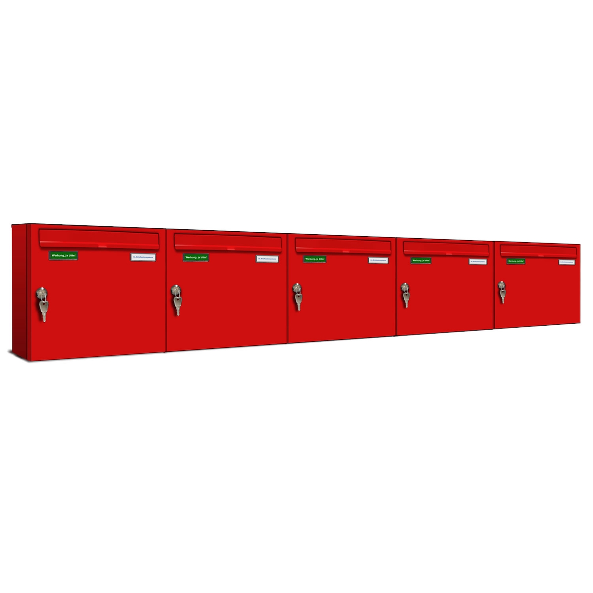 AL Briefkastensysteme 5 x Basic Wand Briefkasten in RAL Farbe 3000 Feuer Rot für Post A4, wetterfest, Artikelnummer: 431P5EA5P3000