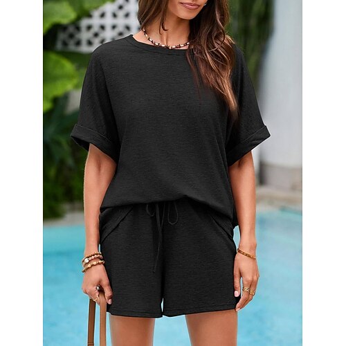 Per donna Set di Pantaloncini Bolero Top Manica Corta Girocollo Tinta unica Coulisse Moda Streetwear Casuale Quotidiano All'aperto Blu Nero Marrone Estate Vestibilità comoda
