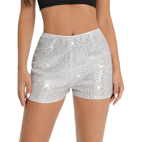 Per donna Shorts Pantaloncini Estivi Pantaloni caldi Dritto Elegante Vacanza Moda Corto Vita media Tinta unica Paillettes Patchwork Fascia Elastica Comodo Elasticizzato Quotidiano Casa All'aperto