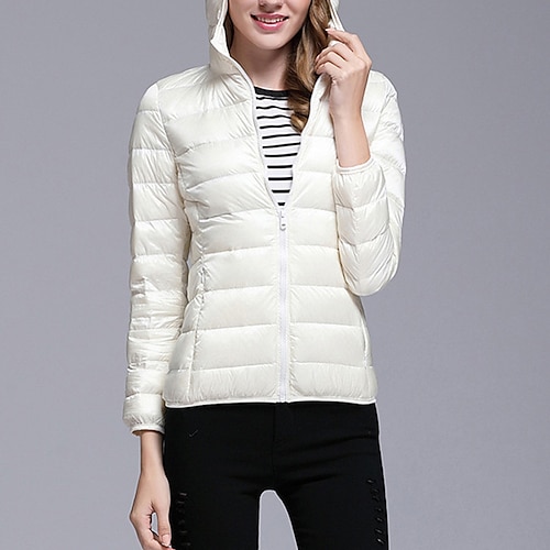 Per donna Giacca Piumino Confortevole Traspirante Cerniera Tasca Casual Semplice Vacanza Streetwear Casuale Abbigliamento quotidiano Monopetto Corto Collo ripiegato Vestibilità regolare Manica Lunga