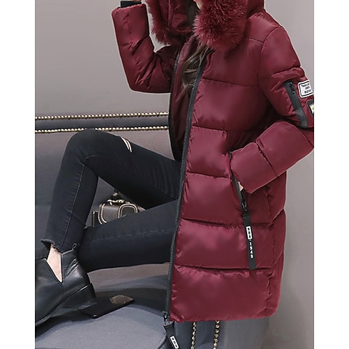 Per donna Cappotto Invernale Giacca Piumino Giacca con Cappuccio Caldo Confortevole Cerniera Tasca Collo in Pelliccia Casual Semplice Vacanza Abbigliamento quotidiano Uscire Weekend Lungo Con
