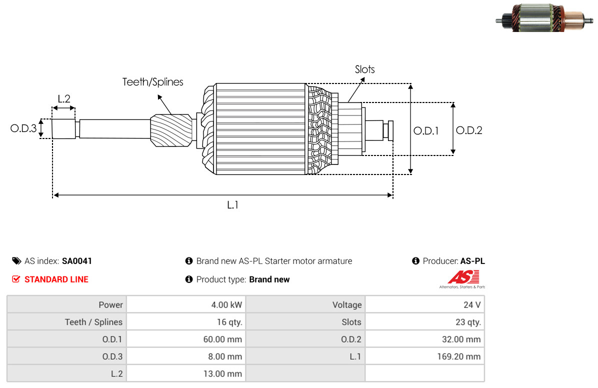AS-PL Anker, Starter Universal 24V 60,00mm für RENAULT DAF IVECO MERCEDES-BENZ MAN VOLVO A0001517715 42550503 9972098 SA0041