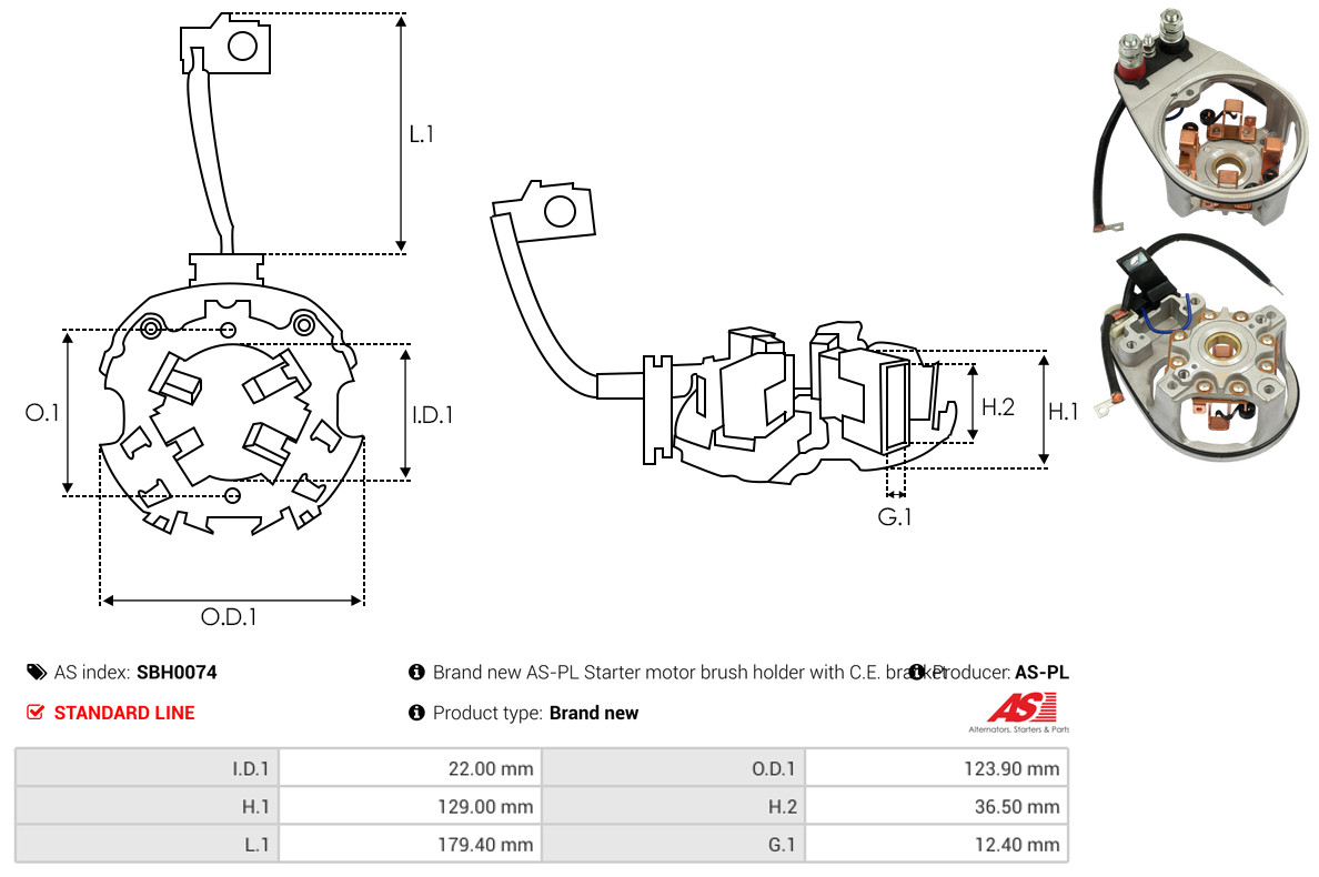 AS-PL Halter, Kohlebürsten Universal 123,90mm für RENAULT DAF IVECO VOLVO 1303867 844408 1606969 SBH0074