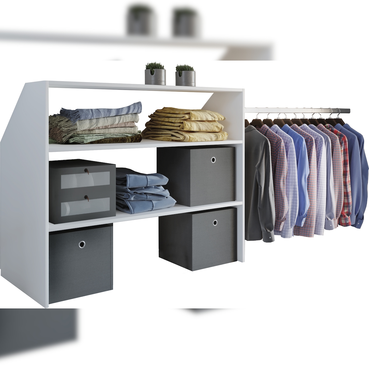 VCM Dacho Regal , Regal, Kleiderschrank Schrägwand 2 Regale und 1 Kleiderstange weiß.