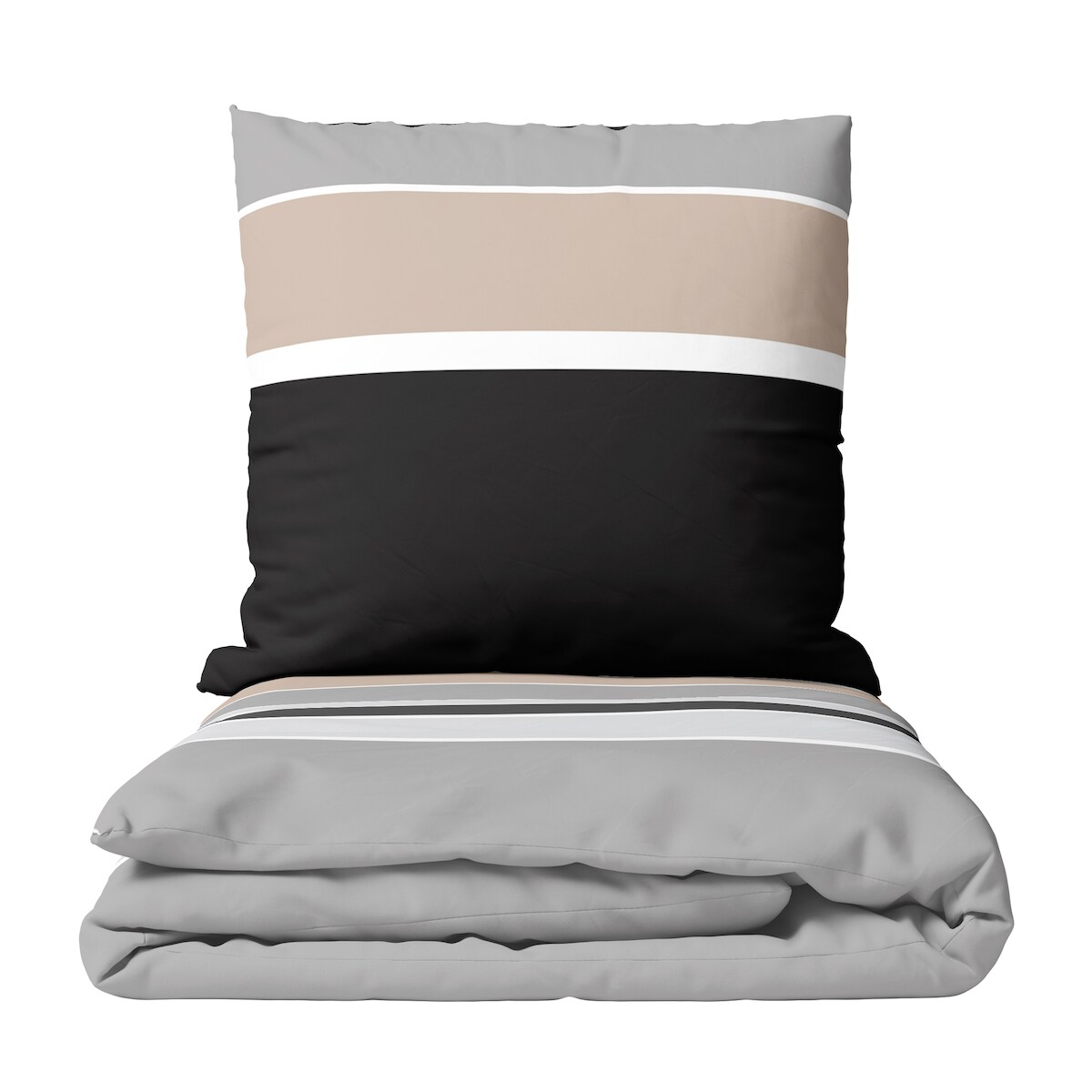 Leonado Vicenti Baumwolle Bettwäsche Set 155x220 cm 80x80 cm Grau Beige Gestreift mit Reißverschluss