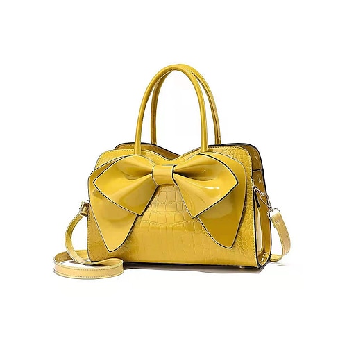 borsa da donna in similpelle con dettaglio fiocco – motivo coccodrillo, vari colori, tracolla regolabile, stili di trasporto versatili per occasioni casual e formali