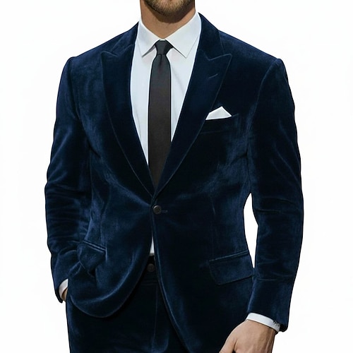 Abiti casual da uomo in velluto da festa con revers a lancia, blu, verde e giallo, tinta unita, vestibilità su misura, 2 pezzi, monopetto, un bottone