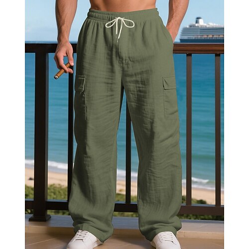 Per uomo Pantaloni di Lino Pantaloni Pantaloni Estivi Pantaloni Larghi Pantaloni da Spiaggia Coulisse Elastico in vita Confezione multipla Semplice Comodità Traspirante Lunghezza intera All'aperto