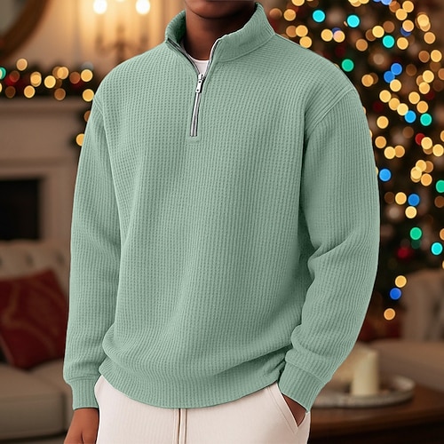 Per uomo Magliette Polo a Nido d'Ape Polo con zip Sport all'Aperto Casuale Colletto Mao Con cerniera Manica Lunga Moda Moderno Tinta unica Testurizzato Lavorato a maglia Primavera Autunno Tutte le