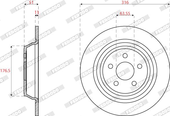 FERODO Bremsscheibe DDF2821C hinten rechts links voll 316mm für FORD USA 5310798 E1GC2A315CC 2019881