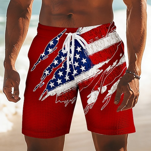 Per uomo Bandiera degli Stati Uniti Patriottico 250° anniversario degli Stati Uniti Pantaloncini Waffle Pantaloncini da tuta Pantaloncini casual Misura del girovita medio Moda Casual Vacanza Jogging