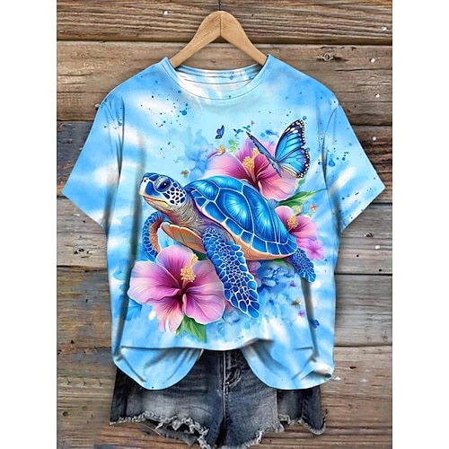 Per donna Maglietta Grafico Animale Tartaruga di mare Vintage Elegante Classico Manica Corta Girocollo Top Regolari Quotidiano Weekend Stampato Blu Arancione Estate Primavera