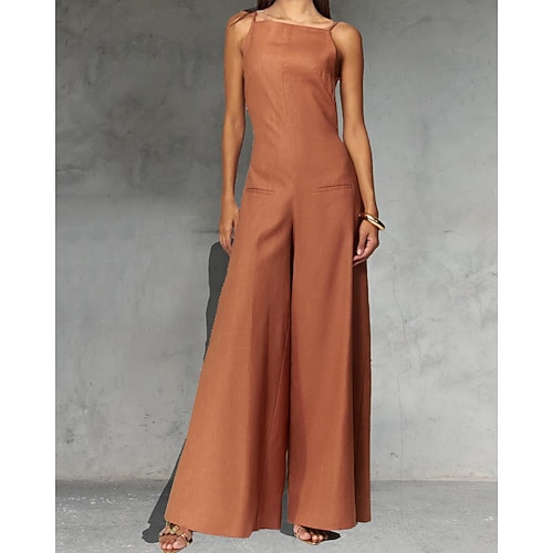 Per donna Normale Tuta Streetwear Tinta unica Senza maniche Senza bretelline Lacci Schiena scoperta Strada Giornaliero Standard Bianco Verde Albicocca Estate